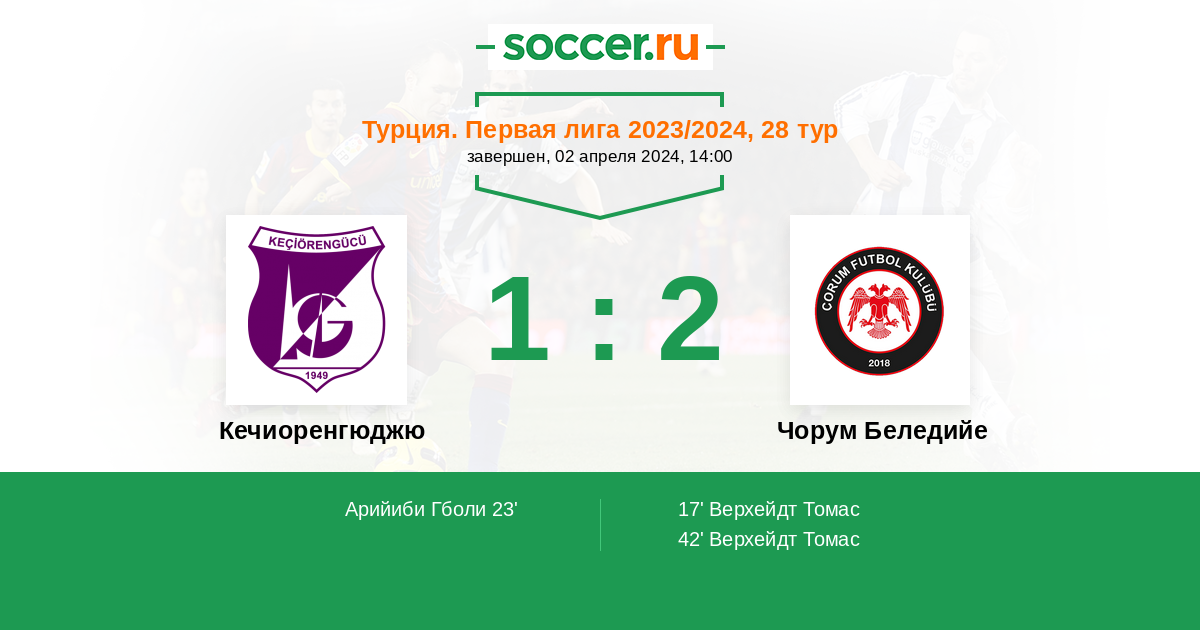 Кечиоренгюджю - Чорум Беледийе: обзор матча 2 апреля 2024