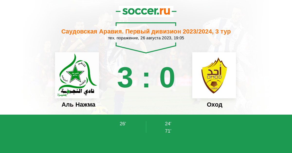 Аль Нажма - Оход: обзор матча 26 августа 2023