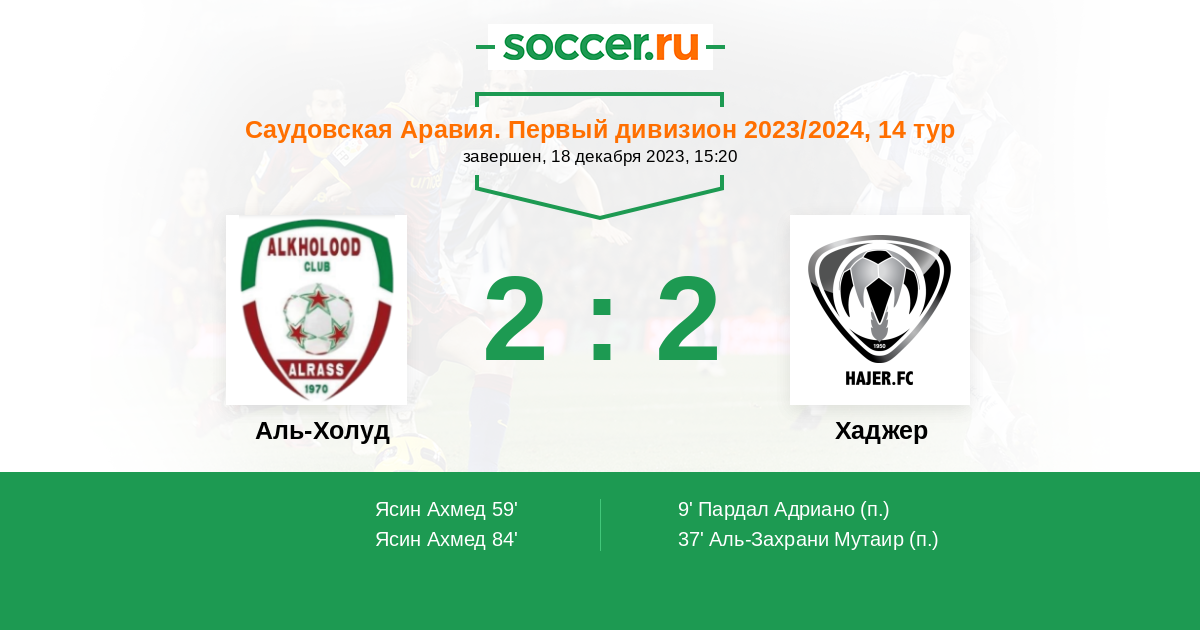 Аль-Холуд - Хаджер: обзор матча 18 декабря 2023