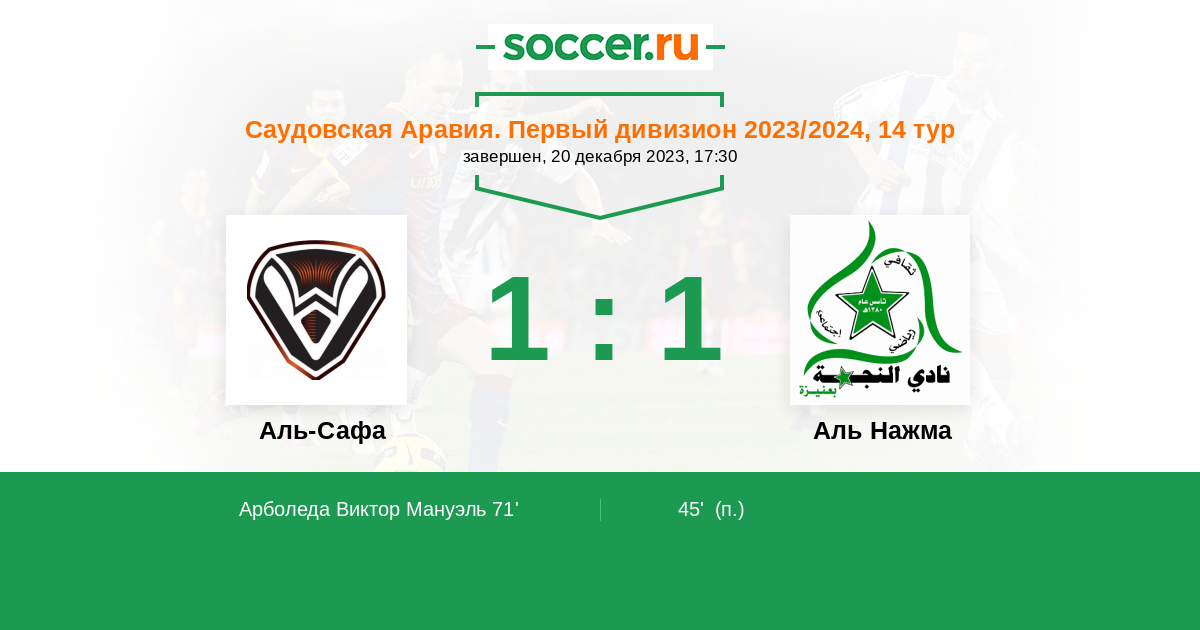 Аль-Сафа - Аль Нажма: обзор матча 20 декабря 2023