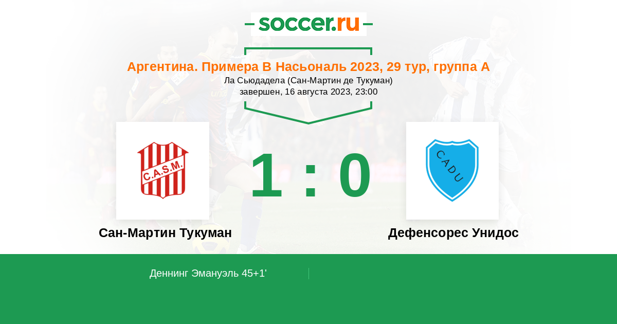 Сан-Мартин Тукуман - Дефенсорес Унидос: обзор матча 16 августа 2023