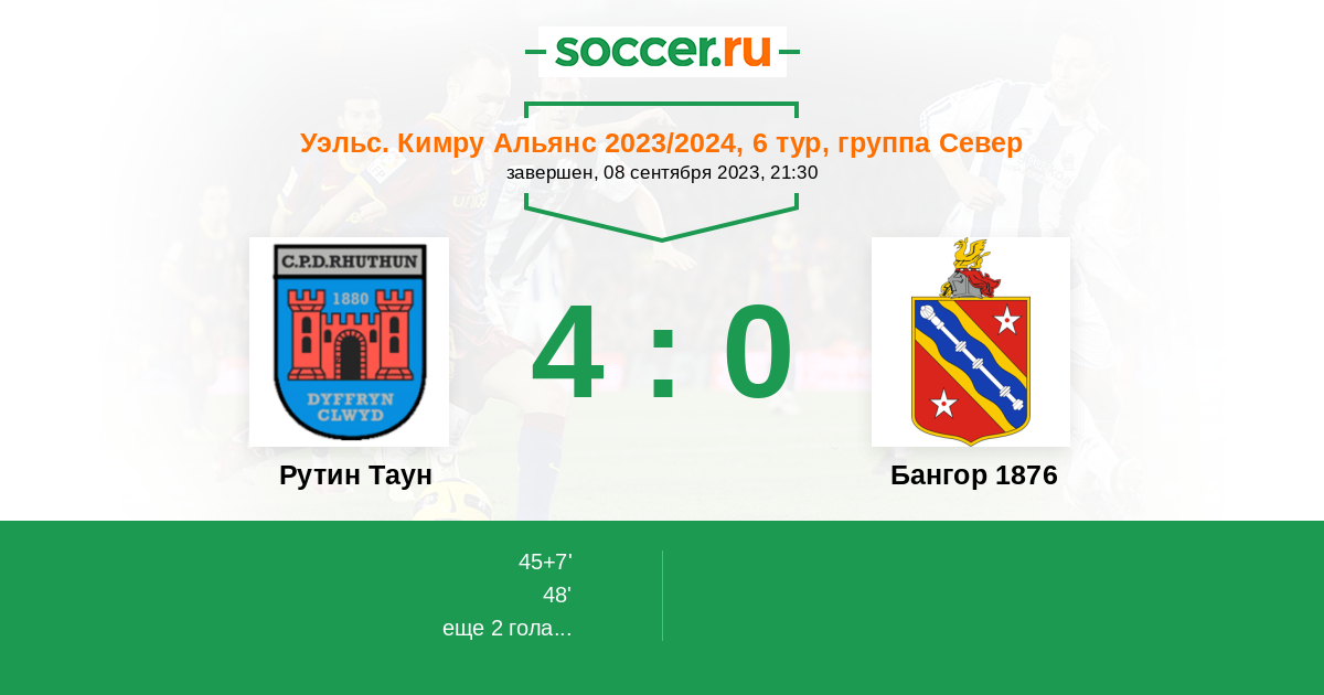 Рутин Таун - Бангор 1876: обзор матча 8 сентября 2023
