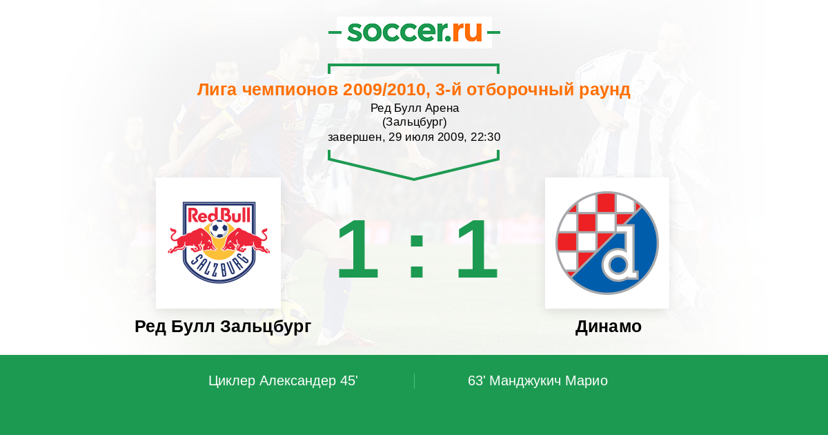 Ред Булл Зальцбург - Динамо: обзор матча 29 июля 2009