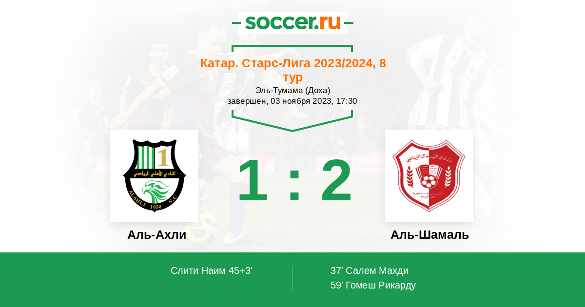 Аль-Ахли - Аль-Шамаль: обзор матча 3 ноября 2023
