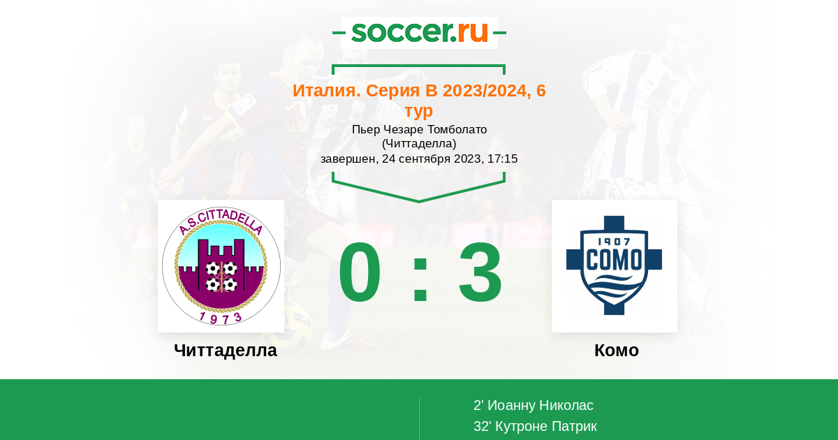 Читтаделла - Комо: обзор матча 24 сентября 2023