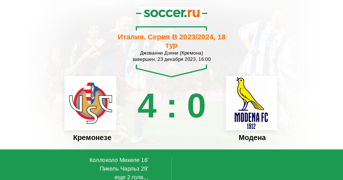 Кремонезе - Модена: обзор матча 23 декабря 2023