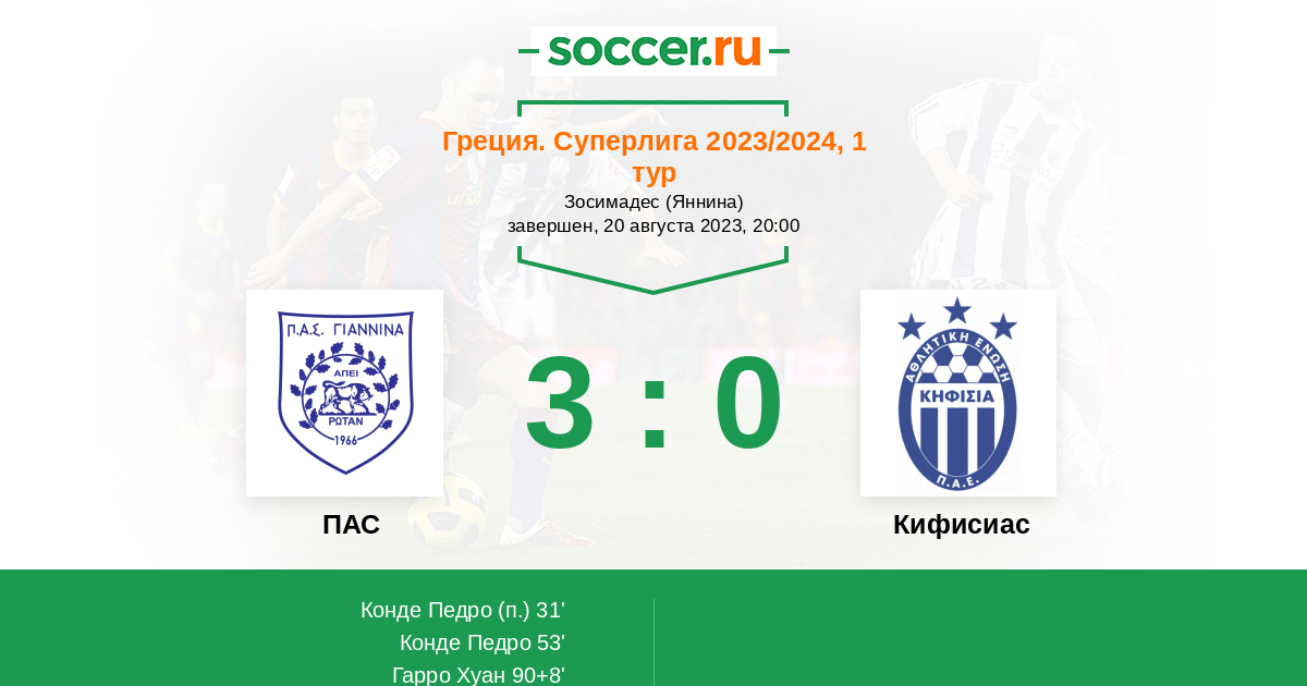 ПАС - Кифисиас: обзор матча 20 августа 2023