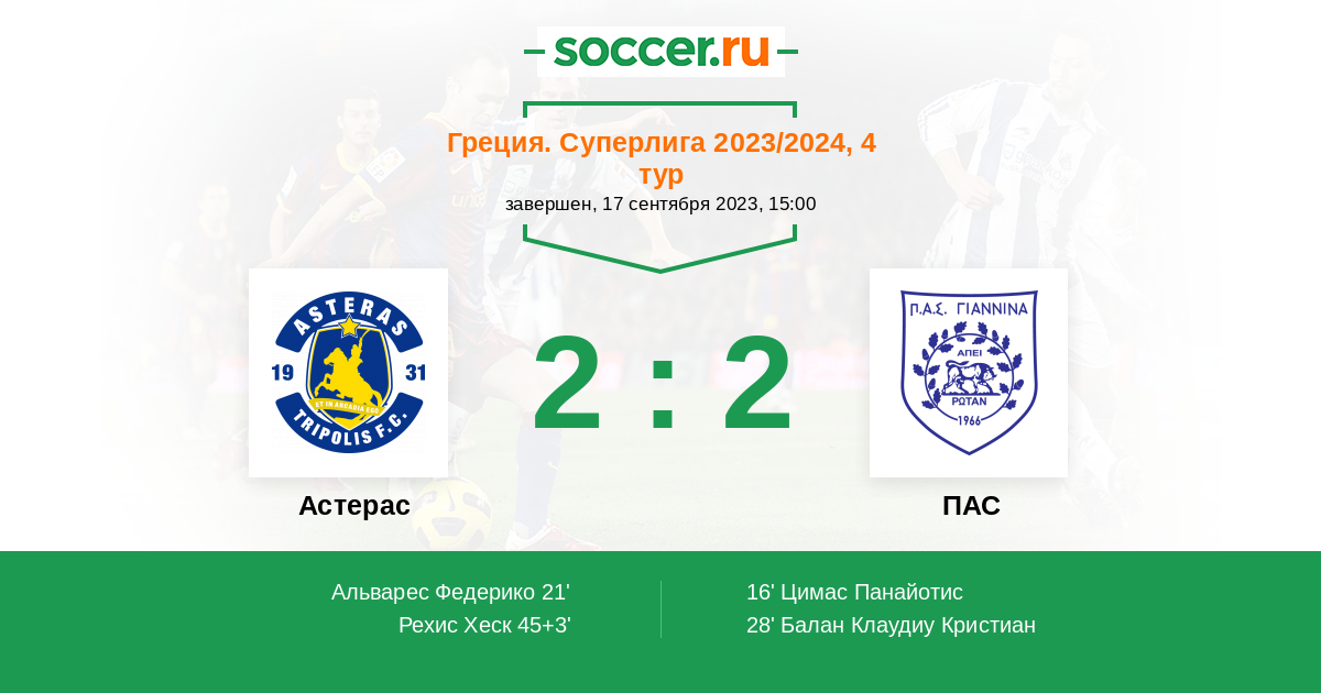 Астерас - ПАС: обзор матча 17 сентября 2023