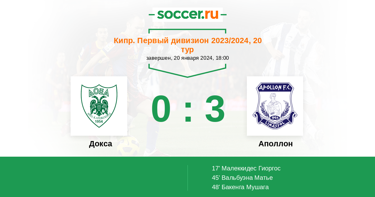 Докса - Аполлон: обзор матча 20 января 2024
