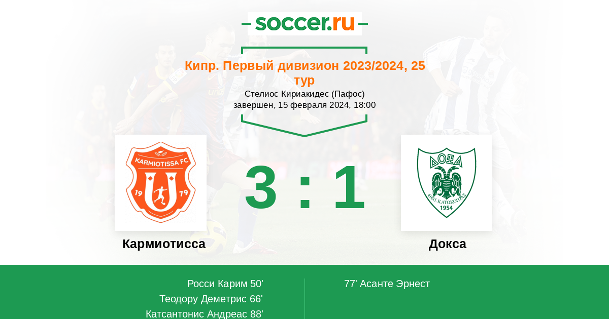 Кармиотисса - Докса: обзор матча 15 февраля 2024