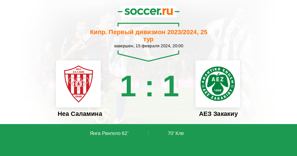 Неа Саламина - АЕЗ Закакиу: обзор матча 15 февраля 2024