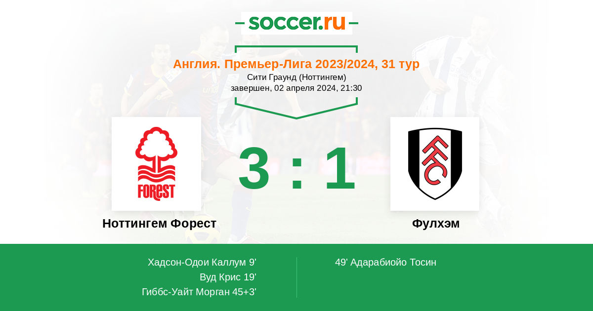 Ноттингем Форест - Фулхэм: обзор матча 2 апреля 2024