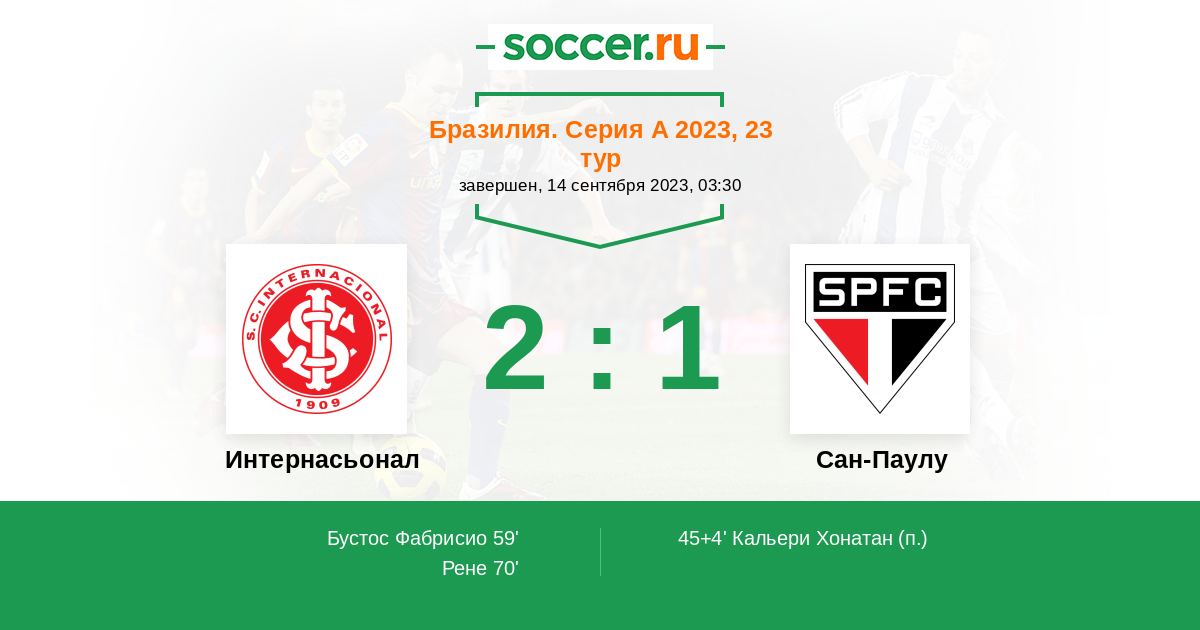 Интернасьонал - Сан-Паулу: обзор матча 14 сентября 2023