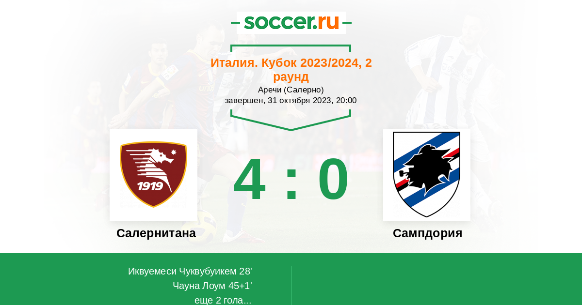 Салернитана - Сампдория: обзор матча 31 октября 2023