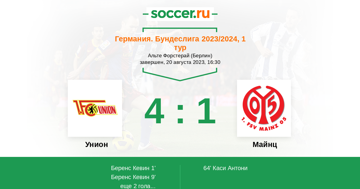 Унион - Майнц: обзор матча 20 августа 2023