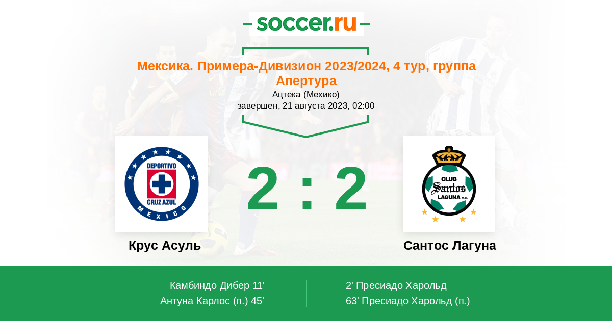Крус Асуль - Сантос Лагуна: обзор матча 21 августа 2023