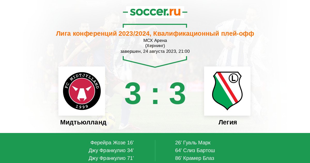 Мидтьюлланд - Легия: обзор матча 24 августа 2023