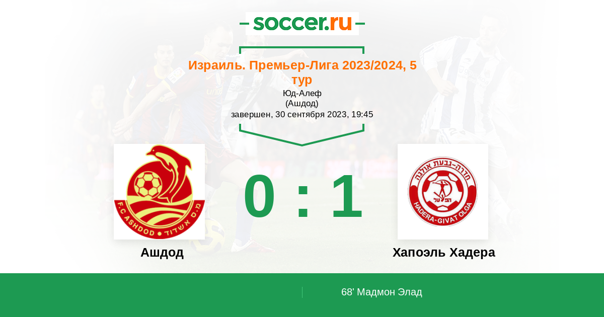 Ашдод - Хапоэль Хадера: обзор матча 30 сентября 2023