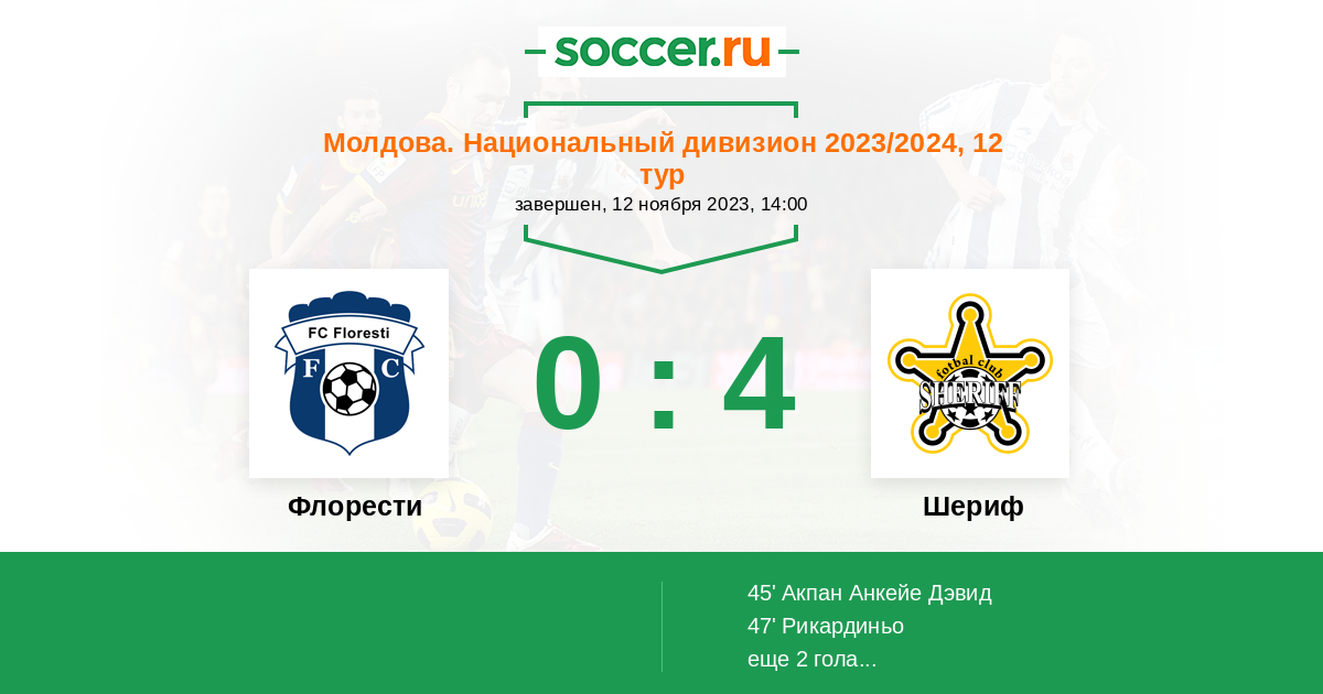 Флорести - Шериф: обзор матча 12 ноября 2023