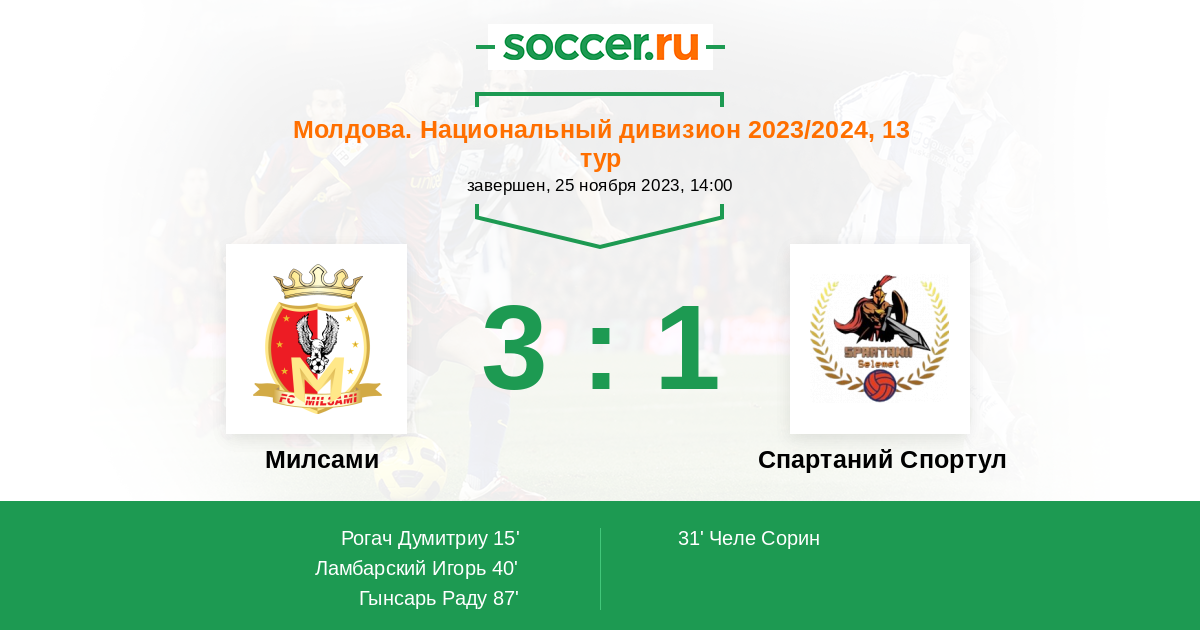 Милсами - Спартаний Спортул: обзор матча 25 ноября 2023