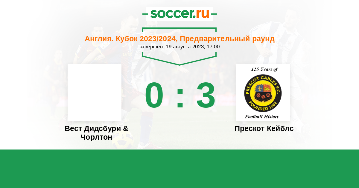 Вест Дидсбури & Чорлтон - Прескот Кейблс: обзор матча 19 августа 2023