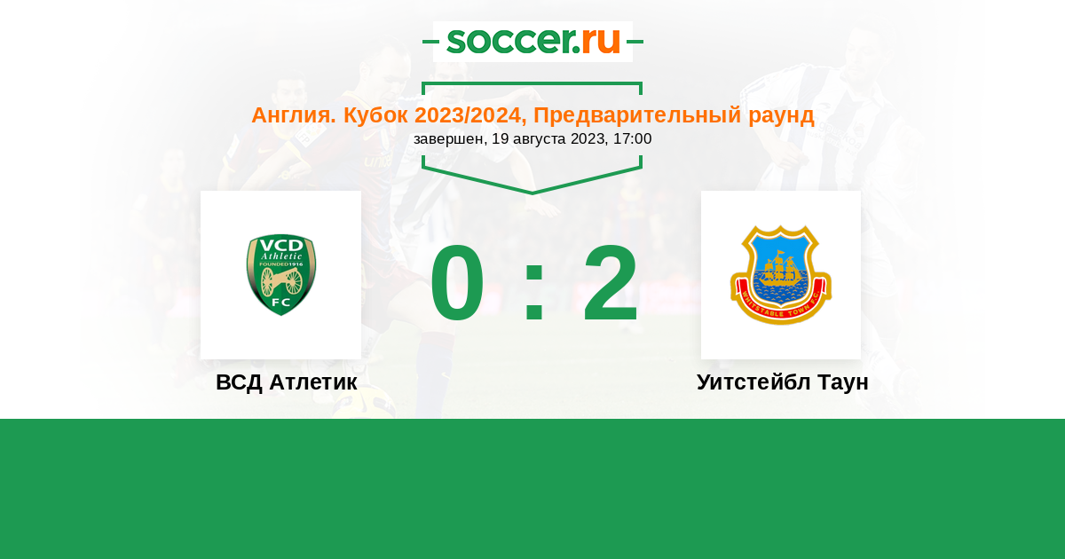 ВСД Атлетик - Уитстейбл Таун: обзор матча 19 августа 2023