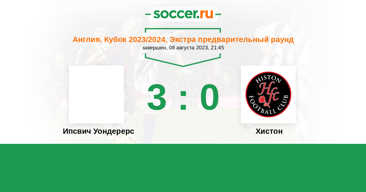 Ипсвич Уондерерс - Хистон: обзор матча 8 августа 2023