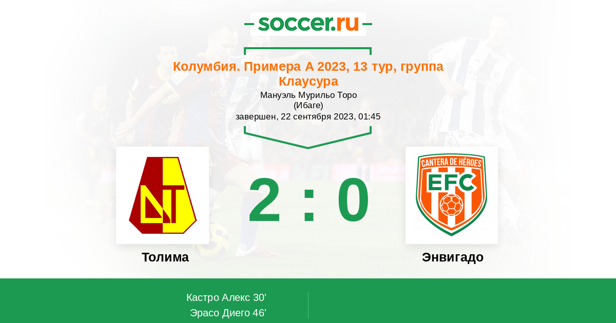 Толима - Энвигадо: обзор матча 22 сентября 2023