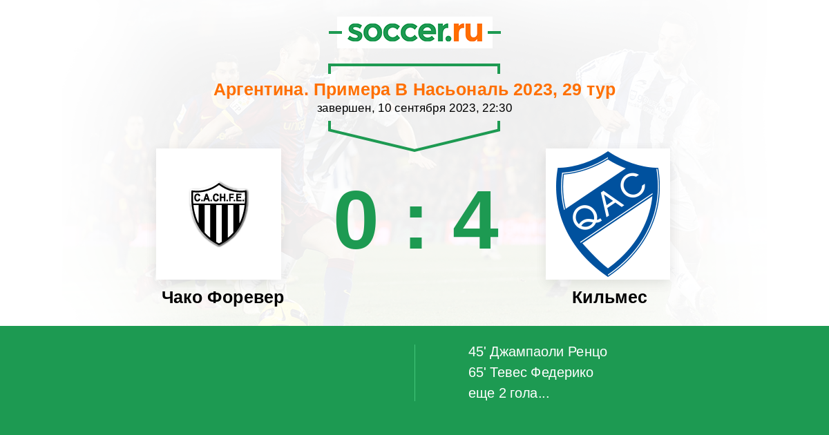 Чако Форевер - Кильмес: обзор матча 10 сентября 2023