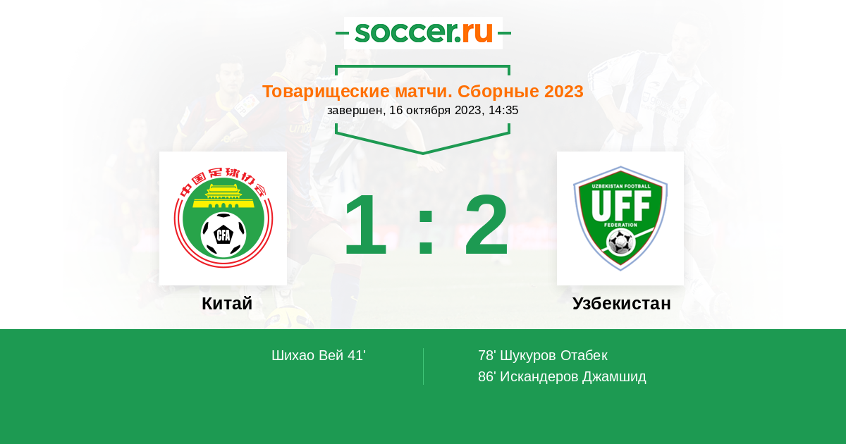 Китай - Узбекистан: обзор матча 16 октября 2023