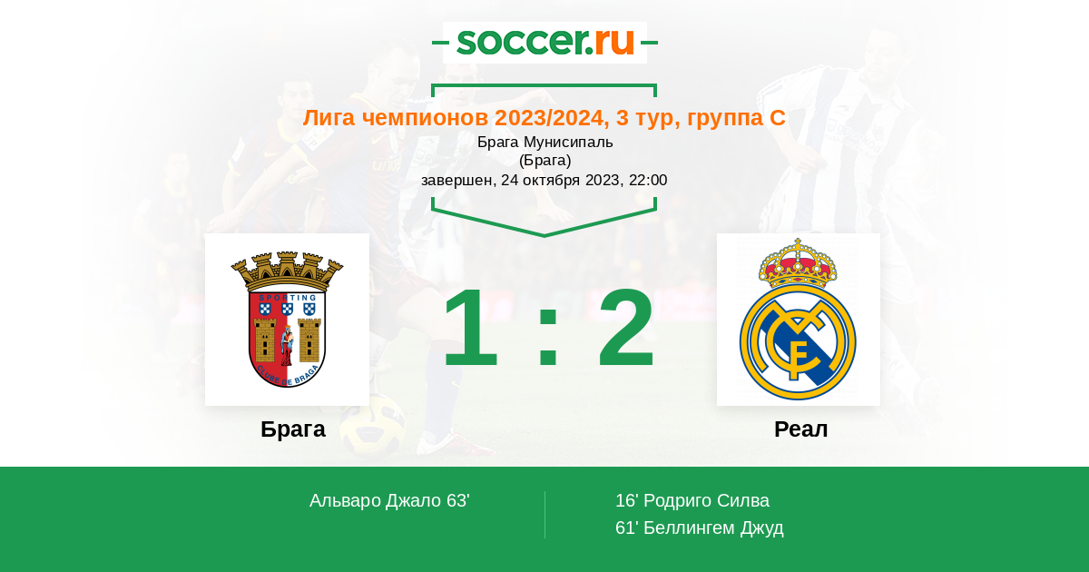 Брага - Реал: обзор матча 24 октября 2023