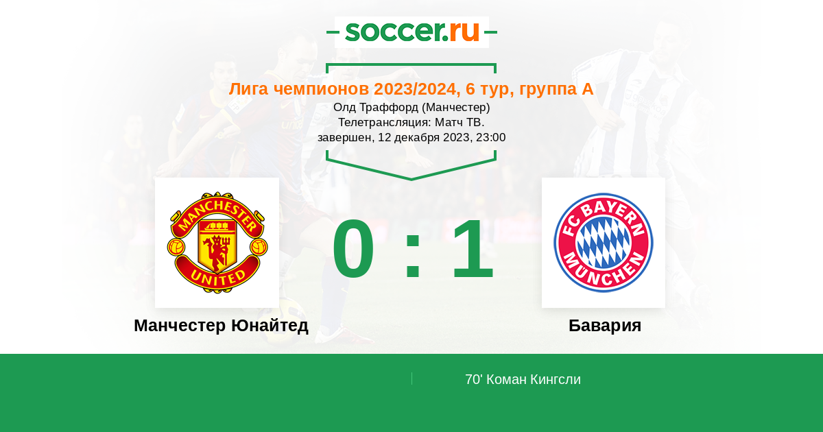 Свой антирекорд повторил сегодня "Манчестер Юнайтед" выступая на групповом этапе Лиги чемпионов заняв 4-е последнее место. Предстоящей весной МЮ не будет в еврокубках, а это значит, что можно полностью сконцентрироваться на АПЛ, где конкуренция зашкаливает. "Бавария" была хороша, выиграла в таком непростом матче даже когда это и не требовалось. Прямую текстовую онлайн трансляцию матча для вас провёл Старчеус Сергей. Впереди ещё будет много классных матчей, оставайтесь с https://www.soccer.ru !
