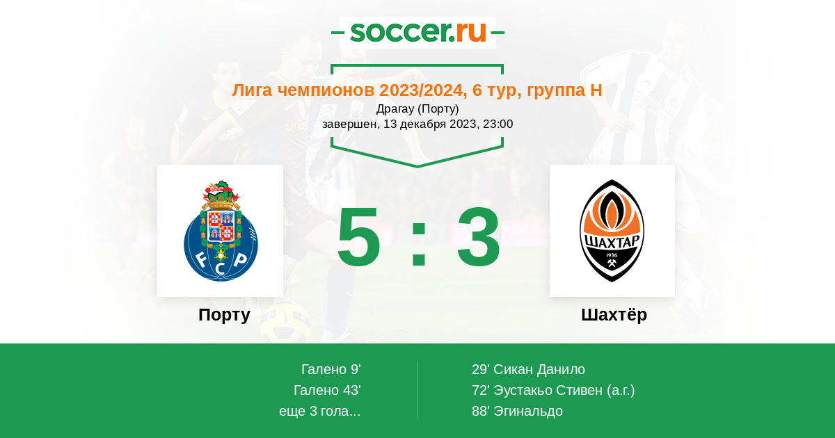 У украинского клуба шансов в этой встрече немного, впрочем бороться “Шахтер” будет однозначно, раз ему удалось обыграть “Барселону” в прошлом туре. “Порту” будет достаточно просто не проиграть, чтобы выйти в плей-офф. В целом гости могут даже и победить в этом матче, если сделают выводы из первой игры против португальского клуба, в которой они полностью провалили первый тайм.