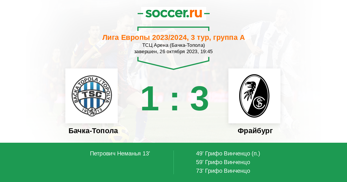 Бачка-Топола - Фрайбург: обзор матча 26 октября 2023