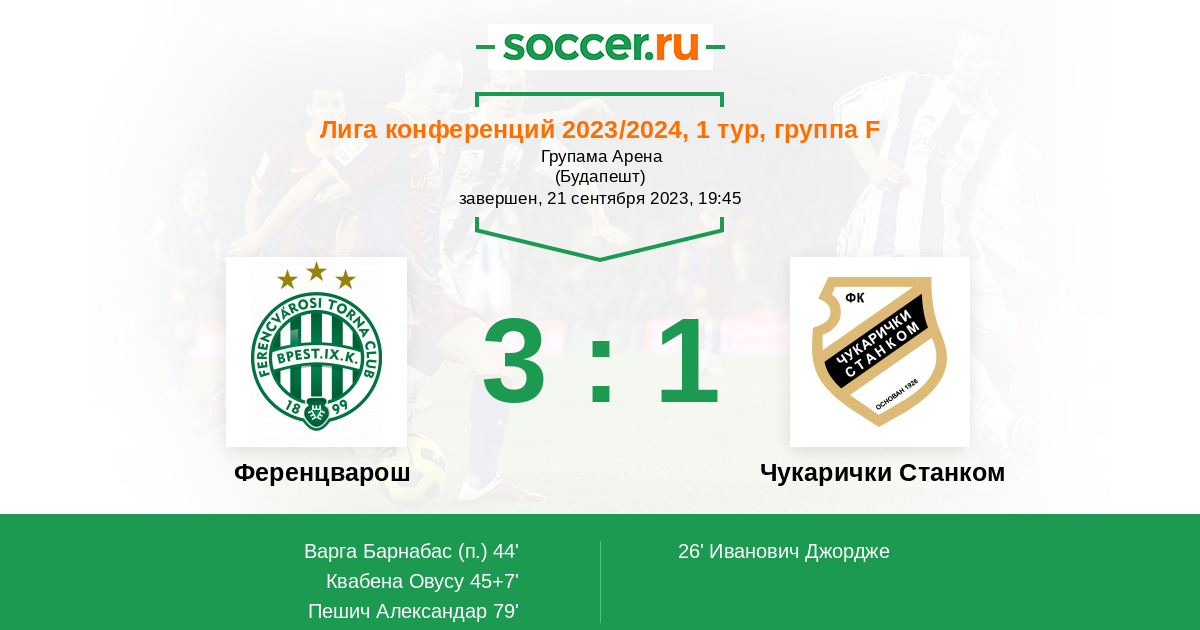 Ференцварош - Чукарички Станком: обзор матча 21 сентября 2023