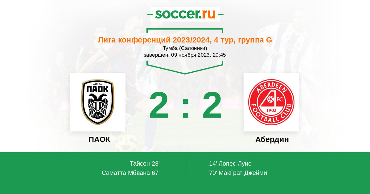 ПАОК - Абердин: обзор матча 9 ноября 2023