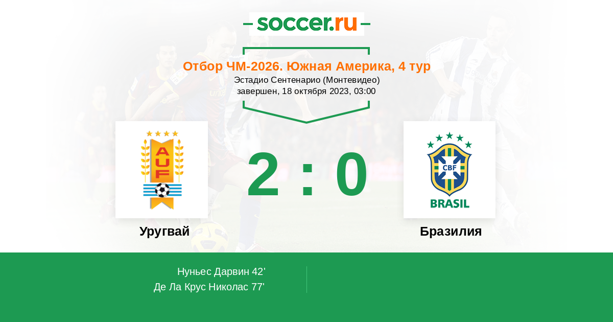 Уругвай - Бразилия: обзор матча 18 октября 2023