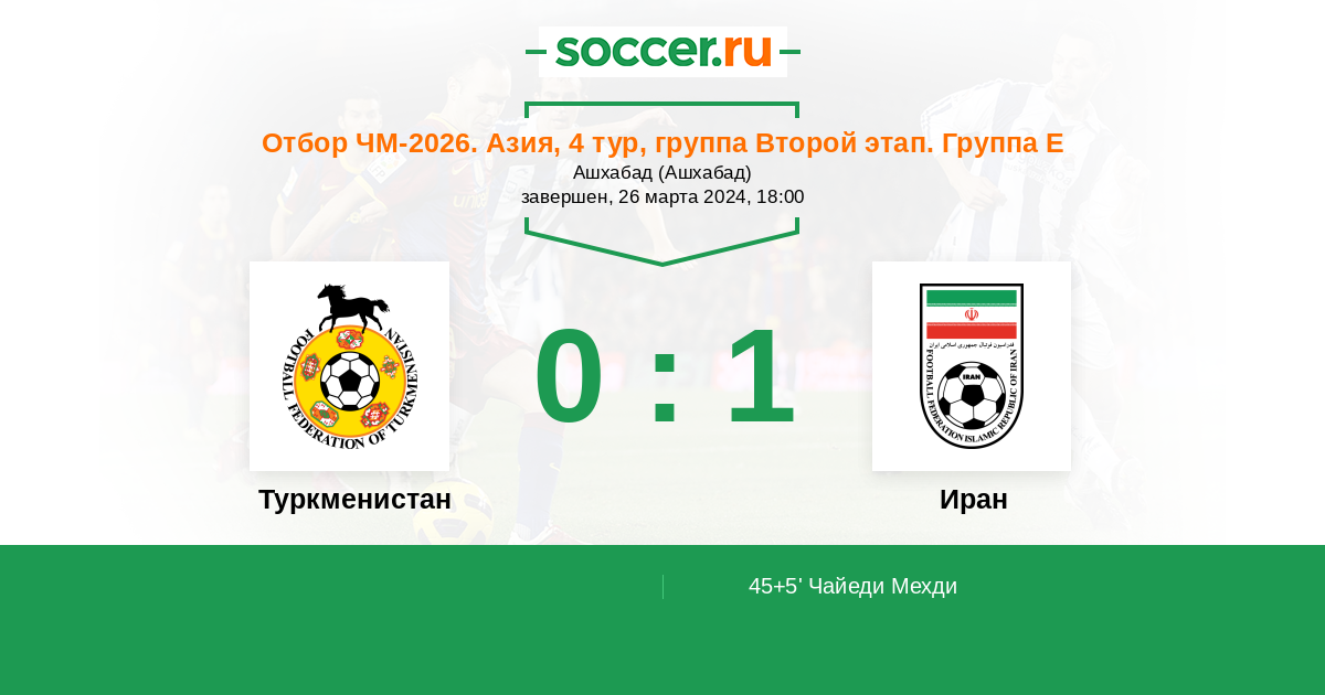 Туркменистан - Иран: обзор матча 26 марта 2024
