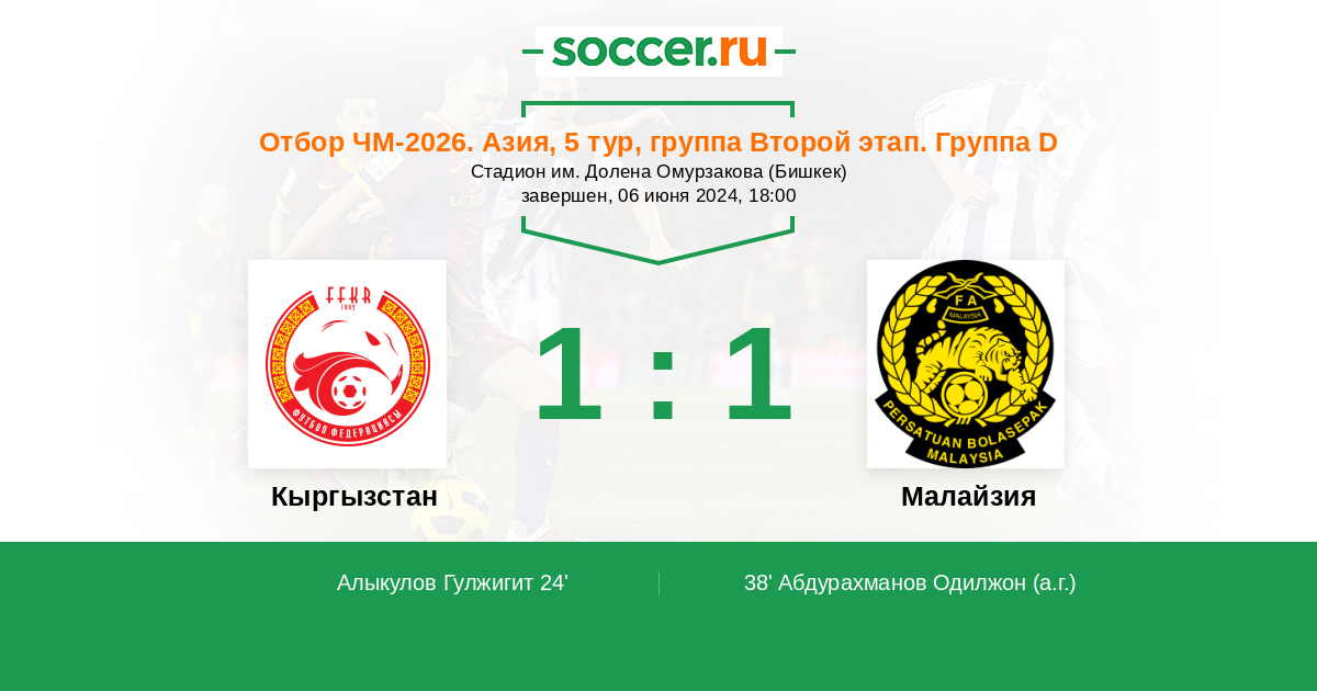 Кыргызстан - Малайзия: обзор матча 6 июня 2024