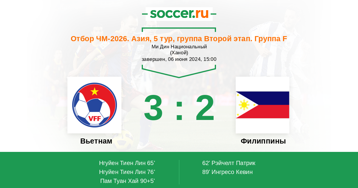 Вьетнам - Филиппины: обзор матча 6 июня 2024