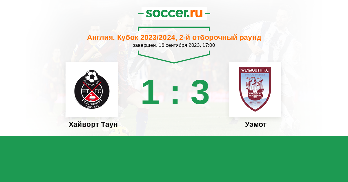 Хайворт Таун - Уэмот: обзор матча 16 сентября 2023