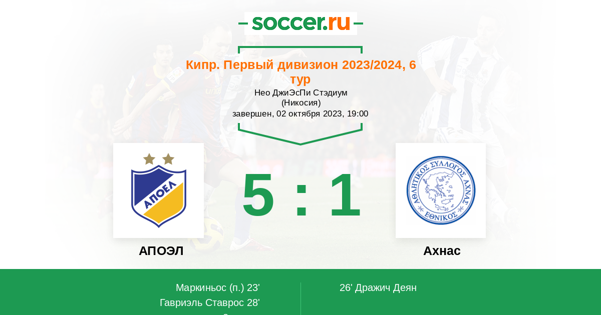 АПОЭЛ - Ахнас: обзор матча 2 октября 2023
