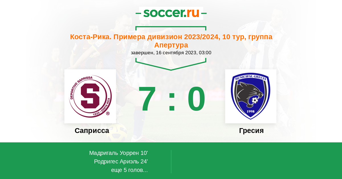 Саприсса - Гресия: обзор матча 16 сентября 2023