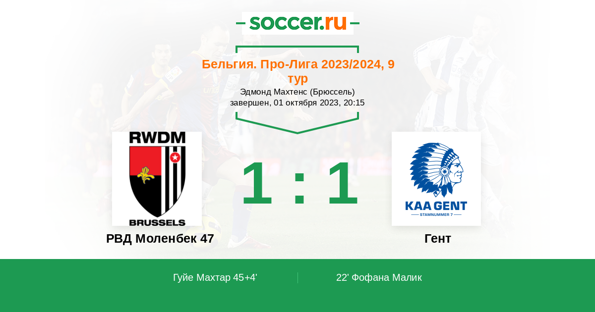 РВД Моленбек 47 - Гент: обзор матча 1 октября 2023
