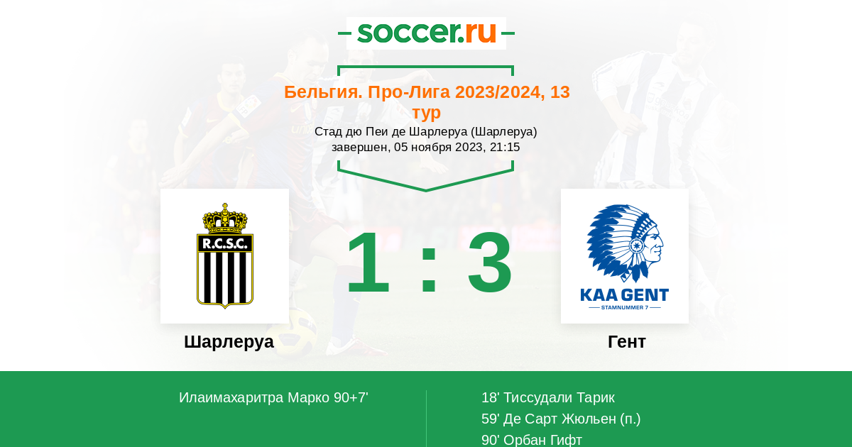 Шарлеруа - Гент: обзор матча 5 ноября 2023