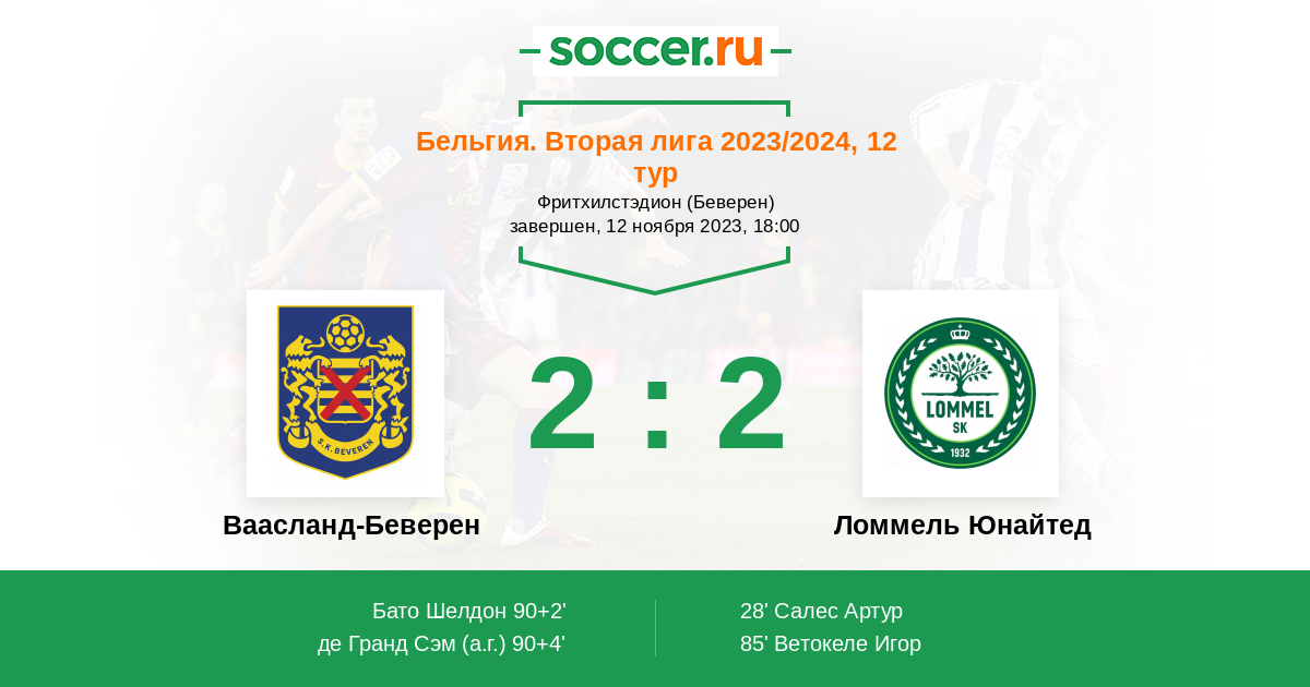 Ваасланд-Беверен - Ломмель Юнайтед: обзор матча 12 ноября 2023
