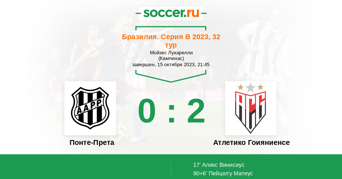 Понте-Прета - Атлетико Гоияниенсе: обзор матча 15 октября 2023