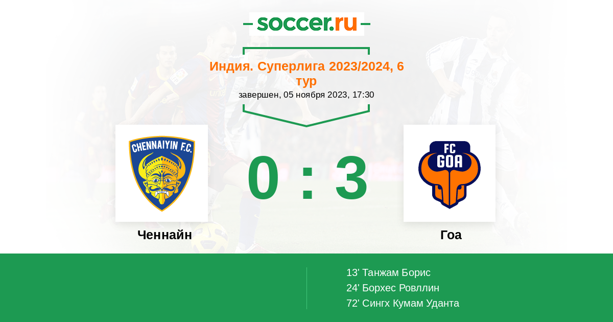 Ченнайн - Гоа: обзор матча 5 ноября 2023
