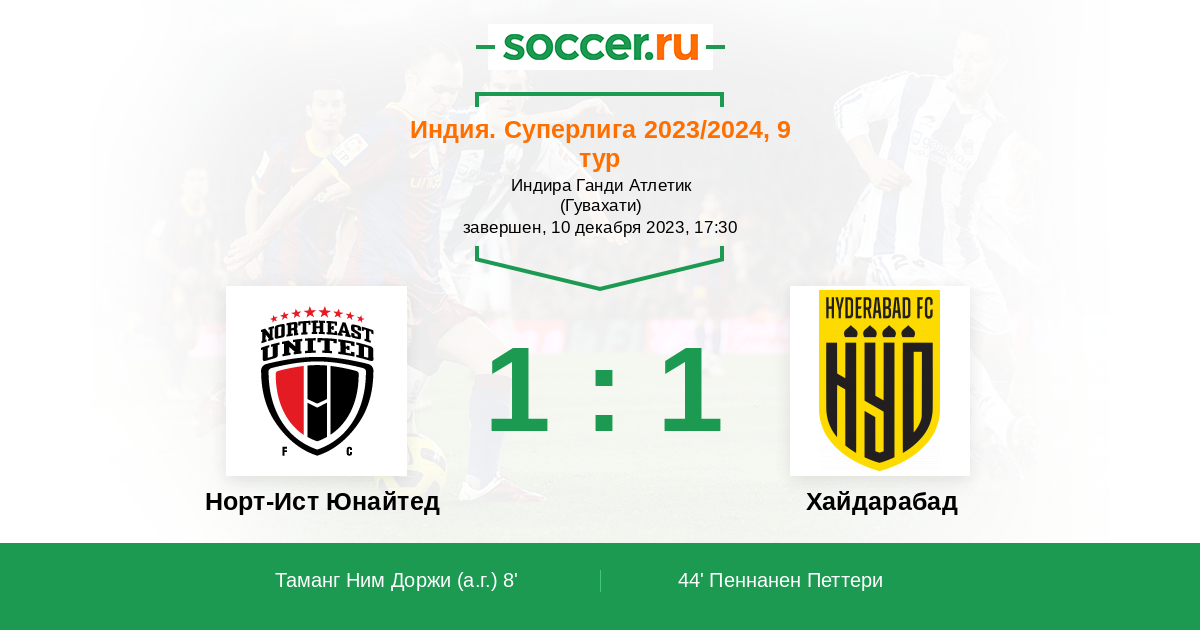 Норт-Ист Юнайтед - Хайдарабад: обзор матча 10 декабря 2023