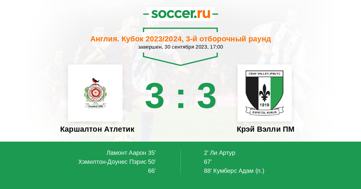 Каршалтон Атлетик - Крэй Вэлли ПМ: обзор матча 30 сентября 2023